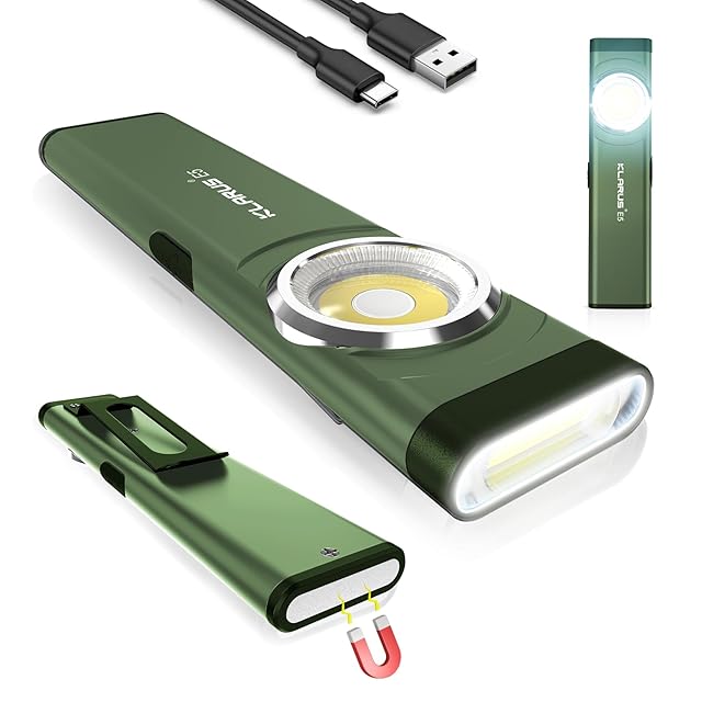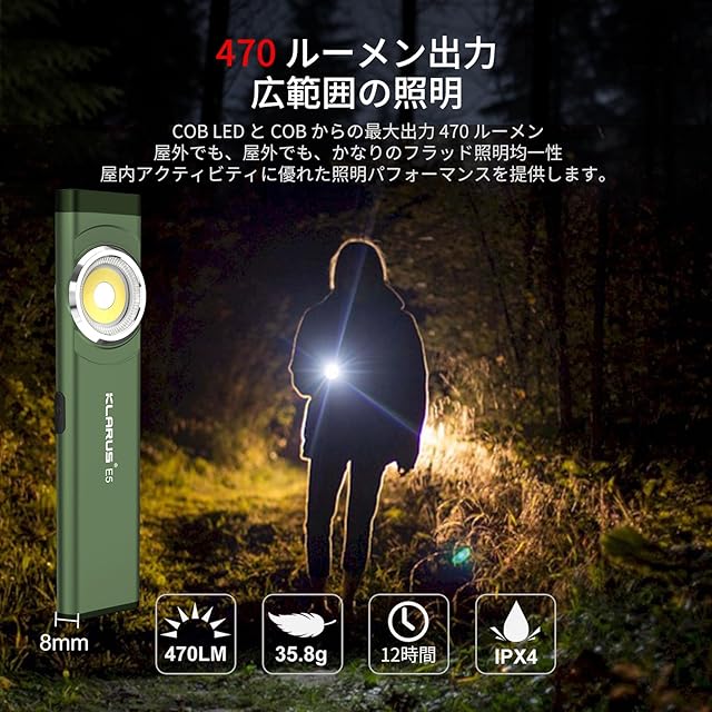 KLARUS E5 ミニライト小型led充電式懐中電灯、維持、キャンプ、ハイキング、緊急事態のために適した磁気基盤およびバックル クリップが付いている明るく 470 ルンメー 小さく平らなミニライト - みどり