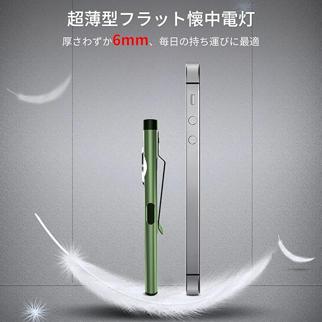 【コンパクトでフラットなデザイン 】 E5トーチはコンパクトなデザインのスティックを採用しています。トーチのサイズは約10.6X2.5X1.5cm、わずか約35.8g、超小型軽量で、フラットなデザインはポケットやバッグが膨らむのを防ぎ、より省スペースで持ち運びやすくなります。