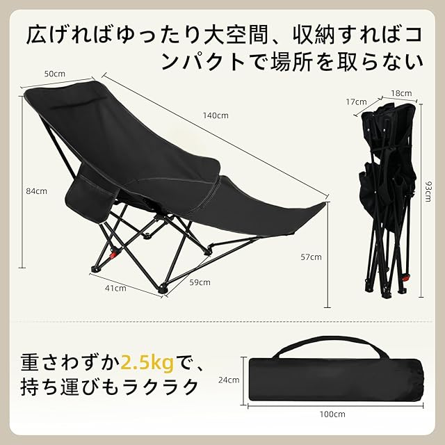 【業界トップクラスの軽さ2.5kg&超薄型収納】 数年以上の経験であるプロ級スポーツ&アウトドア用品のメーカとともに、本製品が発売されています。リクライニングチェア使用サイズ(約)L175 x W80xH68cm、座面幅さ:(約)68cm 。チェア使用サイズ(約)95×44×68cm。驚き重量:(約)2.5kg、耐荷重:(約)120kg。フレーム素材:高強度炭素鋼で安定性が高い。【内容詳細】:1.サイドポケット付き 2.枕付き 3.収納袋付き、付属の収納バッグに入れれば背負えるので、キャンプ場への移動も両手が空いて超快適!車のトランクも圧迫しません。