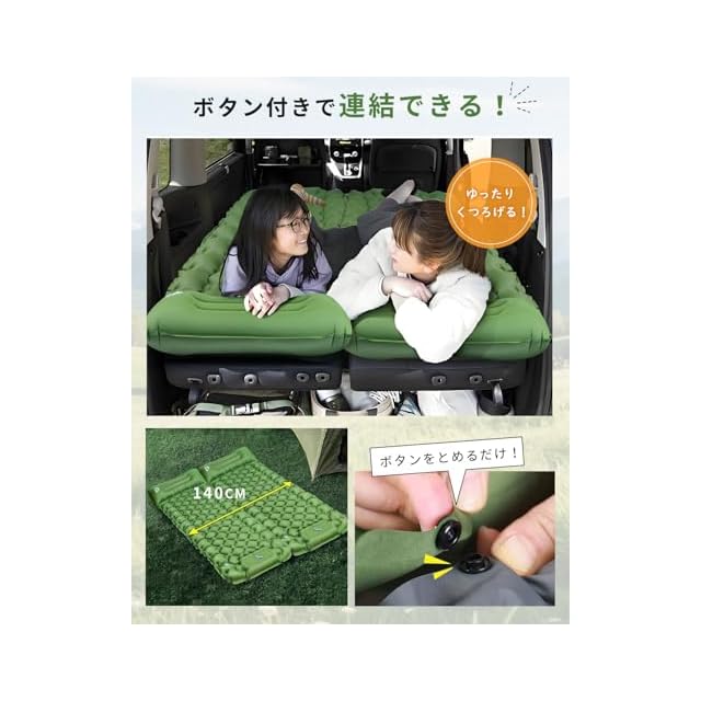 ✅【無限連結可能なデザインで、ファミリーにも対応】GEKETYのエアマットは、両サイドに設けられた接続ボタンによって、複数枚のマットを簡単に連結できます。隙間を作らずにぴったりと連結できるため、家族やカップル、グループでの使用にも最適です。何枚でも無限に繋げられるので、大きなテント内でも一体感のある寝床を作ることが可能。小さなお子様と一緒に寝る場合や、荷物を並べて置きたい時にも便利な設計です。