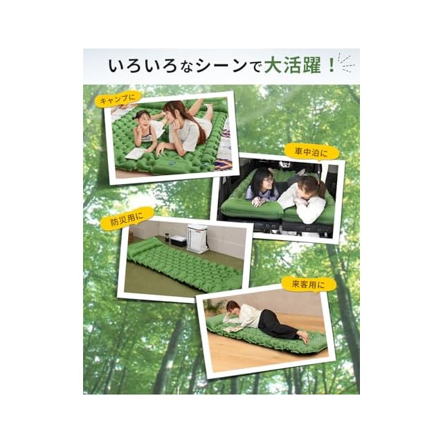 【こんな人におすすめ! 】GEKETYのキャンプマットは、「簡単に膨らませられて寝心地の良いマットが欲しい」「ファミリーで連結して使いたい」「なるべく荷物を軽くしたい」という方に特におすすめです。足踏み式ポンプで準備も片付けも楽々。人間工学に基づいた枕一体型設計や無限連結可能な構造により、使い方の自由度も高く、ソロキャンプからファミリーキャンプ、さらには防災用途まで幅広く対応。防水・耐久性に優れた素材は、アウトドア初心者だけでなく、本格派のキャンパーや登山愛好家にも満足できる仕様。車中泊や緊急時用の備えとしても活躍します。