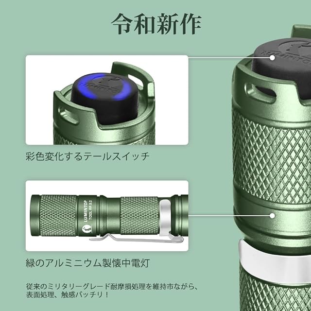 LUMINTOP 小型軽量LED懐中電灯 フラッシュライト 明るさ900ルーメン 連続点灯60時間 5モード/電池付き/マジくテール付き IP68 完全防水 耐衝撃1.5M 単三電池対応 防災 停電対策 ハンディライト (Tool AA 3.0-GREEN)……
