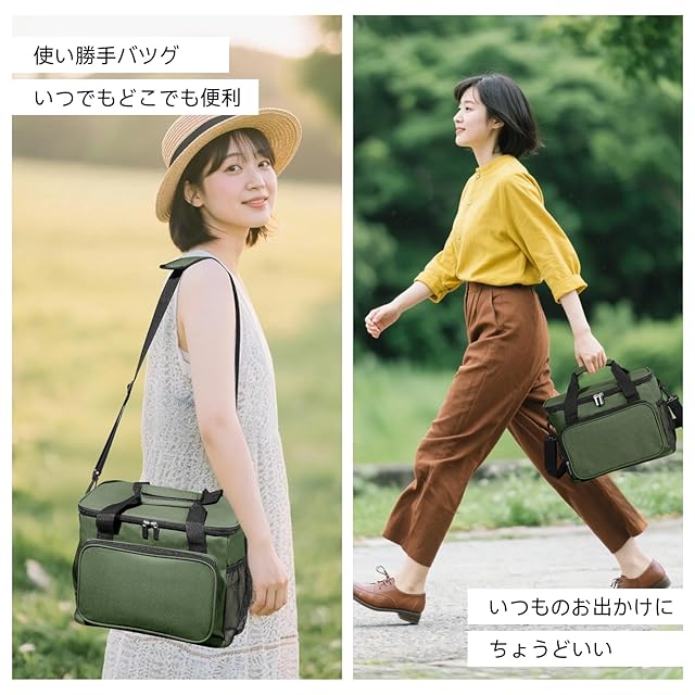 クーラーボックス【中型 15L】折り畳み収納 耐摩耗 保冷バッグ 5層断熱 保冷 保温 防水 軽量 水漏れ防止 ソフトクーラーボックス 軽量 キャンプ/釣り/買い物/BBQ/運動会/お花見や部活等に大活躍 (グリーン)