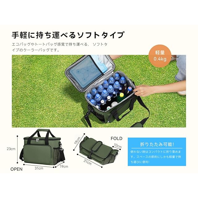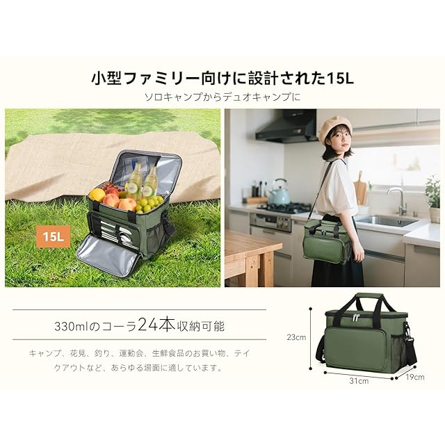 【容量15Lで多彩なシーンに対応】このクーラーボックスは、サイズ31×19×23cm、重さ約0.4kgで、330ml缶を24本収納可能。折り畳み家族でのピクニック、アウトドア、キャンプ、釣り、バーベキュー、お花見など様々なシーンに適しています。 また、水や氷を入れて、夏の暑い日にキンキンに冷えたビールを楽しむこともできます。 毎日の買い物や食材の買い出しにも使え、一年中とても実用的です