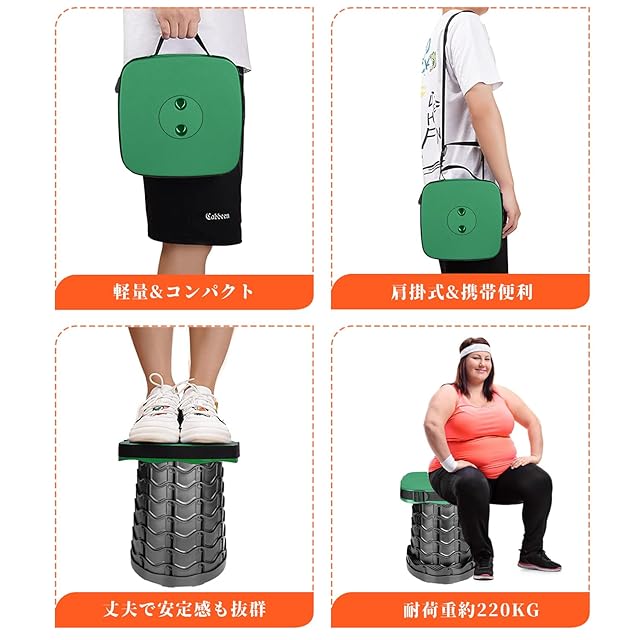 [SCIVEI] 折りたたみ椅子 アウトドアチェア 折畳椅子 コンパクト 角型 超軽量1秒開閉 耐荷重220 KG 高さ調整可能 伸縮式スツール 防水「意匠登録」キャンプ 釣り 体育会 花見用 (グリーン)