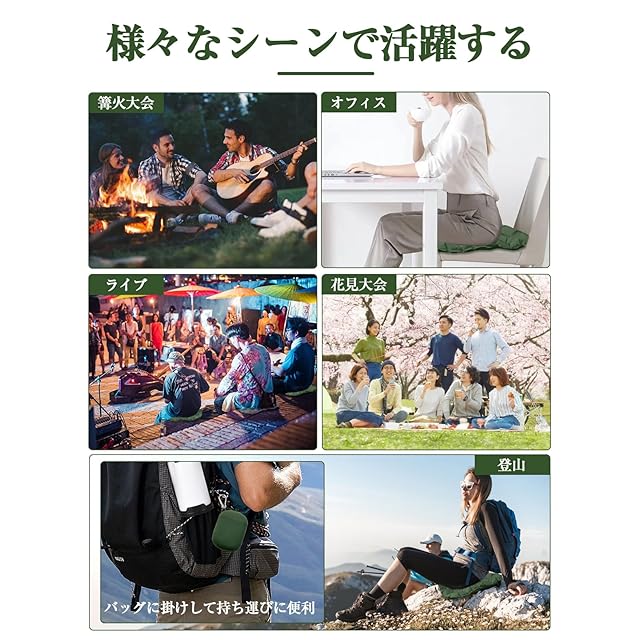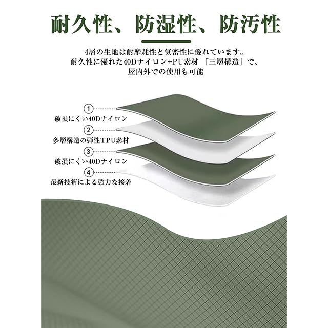 【高品質材採用&耐久性抜群】折りたたみ座布団は耐久性と防水性能に優れます。三層構造で表面には耐摩耗性の高い40Dナイロン生地を使用し、屋内外での使用も可能にしました!収納ケースはシリコン素材を採用しており、突然の雨も怖く無い。生地は耐水加工を施しており、汚れがついた場合は、中性洗剤を使い、ブラシまたはタオルで汚れを拭き取ってください。その後、自然乾燥してください。使用後はコンパクトに折りたたんで収納可能。軽量設計で持ち運びに便利でありながら、必要時に素早く展開できるため、さまざまなシーンで重宝します。家族や友人と共有して使うのもおすすめです。