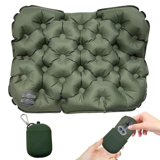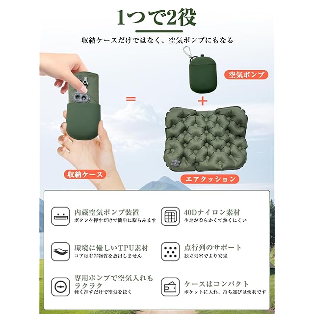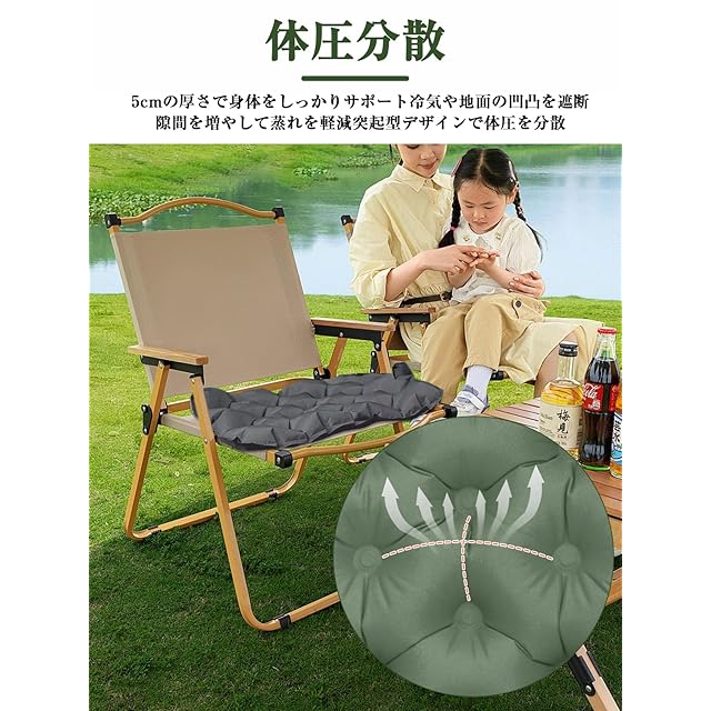 折りたたみマット エアー 座布団 シート エアークッション インフレータブルクッション 5cm厚 収納ケースが空気ポンプ付き レジャーシート 自動膨張 3D 体圧分散 エアーマット (グリーン)