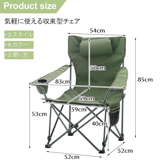 【完成品&コンパクト収納】 組み立ての手間は一切不要、お客様のために完成されたチェアで、アウトドアの時間をもっと快適でリラックスしたものにします。 手間いらずの収納、30秒で完了!さらに、便利な収納バッグも付属。忙しいスケジュールに合わせて、瞬時にご使用いただけます。この折りたたみ椅子は、手軽さと便利さを提供して、キャンプやピクニックなどに最適で、心地よいくつろぎの時間をお楽しみください。