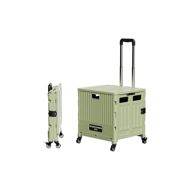 Y K YUKO 融光 キャリーカート 折りたたみ ショッピングカート 幅42×奥行38×高さ99.5cm/耐荷重70kg /360°回転四輪 蓋付き コンパクト 軽量 アウトドア ピクニック キャンプ用 座れる 家庭用 釣り 運動会 簡単取り付け- ハンドル傾斜可 (Lサイズ グリーン 四輪タイプ)