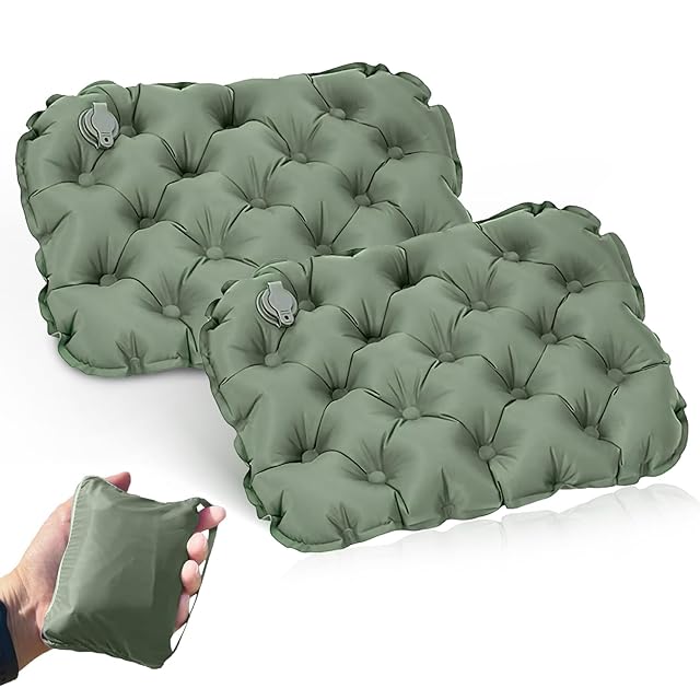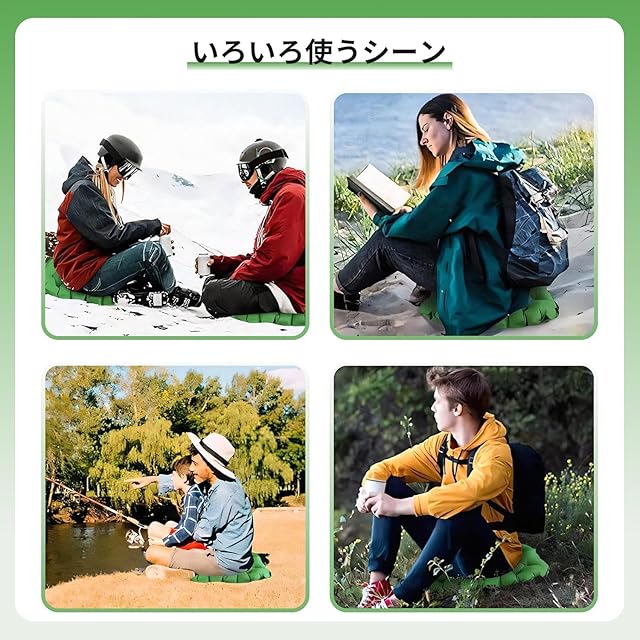 Lasola エアークッション エアー座布団 ポータブルクッション 防水 5cm厚 3D体圧分散 耐荷重200kg 軽量 コンパクト 折りたたみ 携帯座布団 キャンプマット アウトドアマット 収納ケース付き 登山/運動会/レジャー/アウトドア用品 (グリーン(2枚セット))