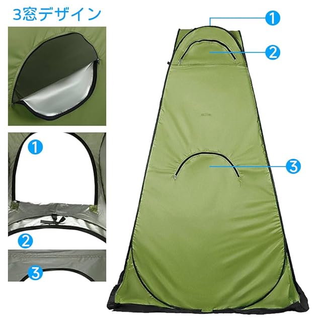 Athvcht 着替えテント ポップアップテント 地震対策 防災 避難 簡易トイレ プライベート 透けない 1門3窓デザイン 防水 UVカットビーチテント アウトドア 携帯 収納袋付き ワンタッチ 更衣室 海水浴 防災 シャワー 釣り 120 *120*190cm (グリーン, 120 × 120 ×190cm)