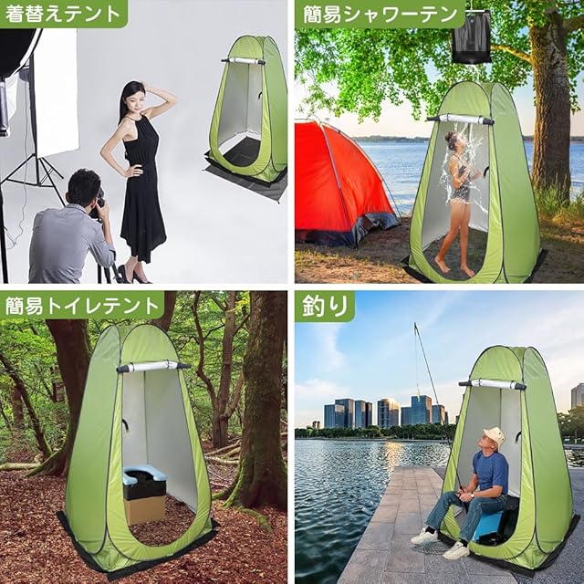 「広い適用」簡易テントは持ち運びが簡単で、公園・海水浴・キャンプ・ピクニック・ビーチ・プールなどなシーンで活躍しています。更衣室のない場所でも人目を気にせず着替えや簡易シャワーができます。登山や釣りする時の雨&日避けテントにもなります。また高速道路を長時間運転や渋滞する場合、もしくは災害時にトイレ用テントや避難所テントとして活用できます。