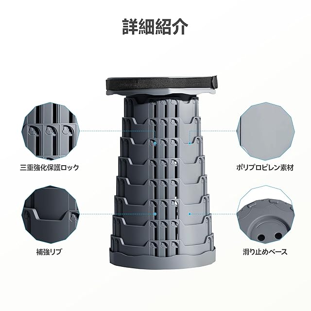 【耐久性・堅牢性・安定性が三位一体】:三重構造のバックルが補強され、さらに頼れる構造に進化しました。折りたたみスツールの本体は複数のセクションから巧みに組み立てられ、各層には安心・安全のロックボタンを完備。耐久性に優れ、安定感抜群で、信頼性の高い一台です。