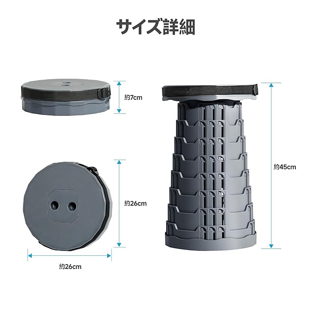 折りたたみ椅子 折りたたみ踏み台 伸縮式 アウトドアチェア 折り畳み式 キャンプ椅子 キャンプスツール 軽量 防水 持ち手付き 持ち運び便利 1秒開閉可能 耐荷重250KG 高さ調整可能 釣り/観戦/花火大会/屋内/屋外用(青灰色)