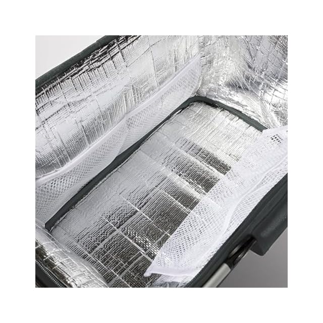素材:【本体】表地/ポリエステル、裏地/アルミ蒸着シート、フレーム/アルミ、ハンドルグリップ/EVA樹脂、フレーム連結部分/ポリプロピレン【外袋】ポリエステル(内側芯材クッション材、EVA発砲樹脂)