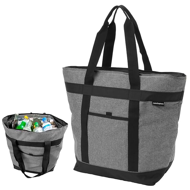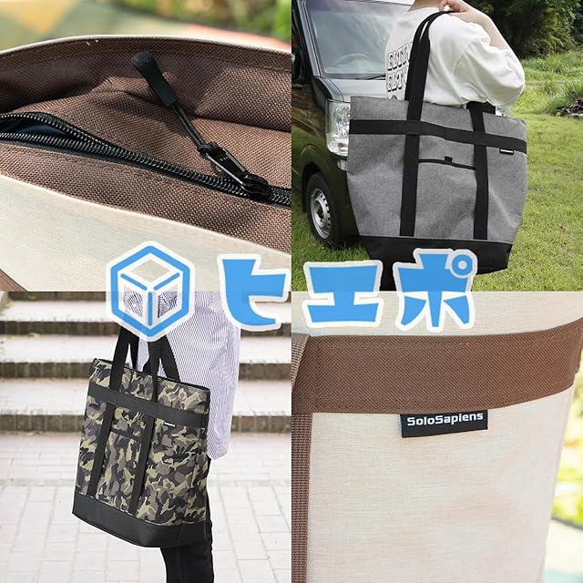 【冷え冷えキープ!】ソロサピエンスのヒエポ [HiePo] は、肩掛け式の大容量保冷バッグです。30Lの大容量で、アウトドアや買い物で食料、ペットボトル、缶など沢山持ち運べます。肩掛け式トート型のため、体にフィットして荷物を持ち運べます。使わない時は折り畳んで収納可能。厚めの断熱素材を使用しており、高品質ファスナーで密閉することで、こだわりの保冷力を実現しました。バッグの内側は防水ビニル製のため、濡れたり汚れたりしても水洗いできて衛生的です。