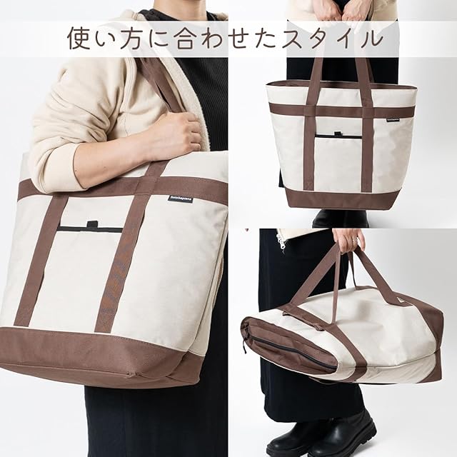 【商品詳細】素材:300D オックスフォード布(撥水加工)、内側:防水PEVA、サイズ:約 52 x 41 x 20 x 35cm、収納時サイズ:38 x 23 x 12 cm、重量:590g、容量:30L、原産国:中国、企画デザイン:日本、※低温を維持するためには必要量の保冷剤を使用してください