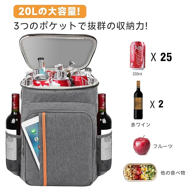 容量も20リットルとたっぷり。キャンプ、BBQ、ピクニック、お花見、パーティー、ショッピング、運動会、釣り、スポーツ大会、アウトドア活動などさまざまなシーンで使えるソフトクーラーボックスです。