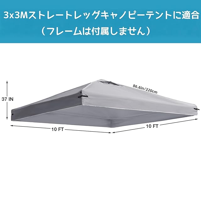 ✔ トップカバーのみ(ストラップ付き):この商品には、3x3m タープテント用トップカバー(ストラップ付き)のみが含まれています。ほとんどの主要ブランドの 3x3m タープテント及びキャノピーフレームに適合します。ご注文前には、フレームのサイズを必ず測ってください。