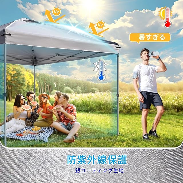 ✔ 優れた通気性と遮光・遮熱性能:2.5x2.5m タープテント専用トップカバー(キャノピー交換用)には通気孔が内蔵されており、2.5x2.5m タープテントの内部にこもった熱を効率的に放出し、涼しさを維持します。さらに高い遮光・遮熱効果を発揮し、強い日差しをしっかり遮って内部の温度上昇を抑制。同時に風の抵抗を軽減することで、強風時でもタープテントが地面にしっかり固定されます。