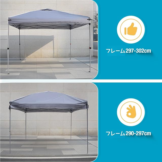 ✔ 2.5x2.5m タープテント用トップカバー:2.5x2.5m のキャノピーフレームに適合するタープテント専用交換用トップカバーとして設計されています。調節可能なコーナーストラップにより、タープテントのフレームにぴったりフィットし、トップカバーのシワを防ぐだけでなく、隙間や風によるバタつきも確実に防止します。
