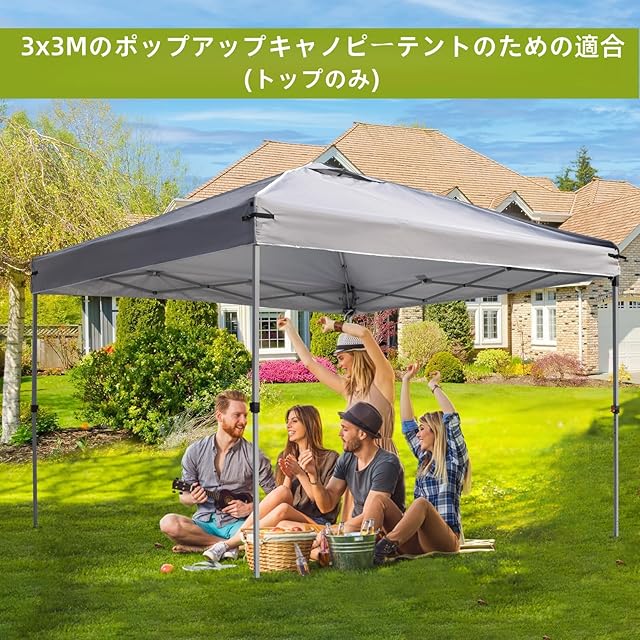 ✔ 3x3m タープテント用トップカバー:3x3m のキャノピーフレームに適合するタープテント専用交換用トップカバーとして設計されています。調節可能なコーナーストラップにより、タープテントのフレームにぴったりフィットし、トップカバーのシワを防ぐだけでなく、隙間や風によるバタつきも確実に防止します。