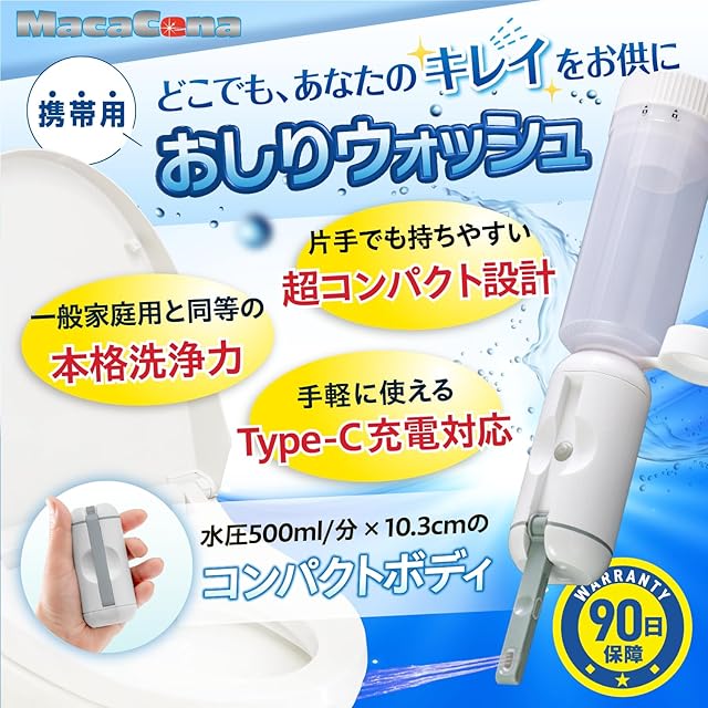 使いやすい設計:電動式で簡単操作が可能。ワンタッチで水圧を調整でき、強モードでは500ml/分の家庭用洗浄便座に匹敵する水圧を、弱モードではお尻に優しい300ml/分を実現しています。さらに、水だけでなくお湯も使用できるため、快適にお使いいただけます。