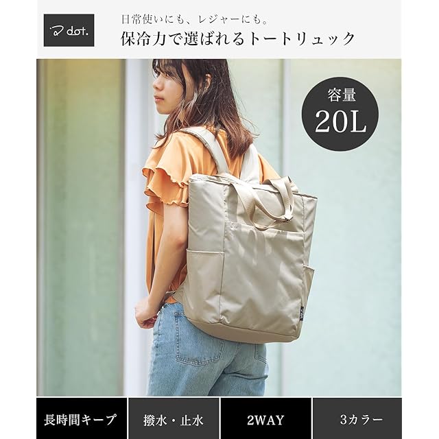 dot. 保冷リュック 20L 保冷バッグ クーラーバッグ 2way 保冷 保温 大容量 止水ファスナー 撥水 買い物バッグ レジカゴバッグ トートバッグ バックパック BBQ キャンプ レジャー レディース メンズ (グレージュ)