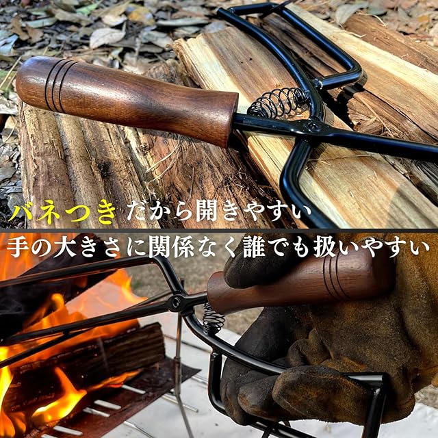 ✅従来品の火バサミや薪バサミにはないバネ付きだから力不要 バネの力で自然に火バサミが広がるから手が小さい方や女性でも扱いやすい。「バネがないものと比較すると段違いに使い心地が良い」お客様から大好評です。