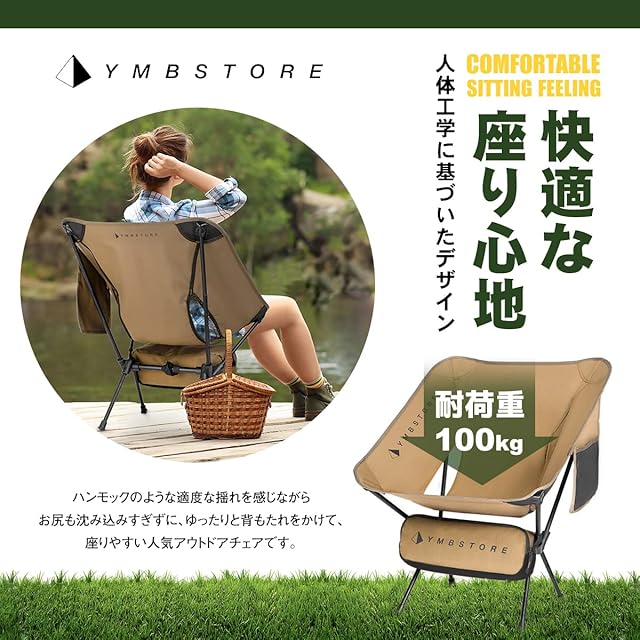 アウトドア チェア キャンプ 椅子 イス 折りたたみ ハイキング コンパクト 超軽量 登山 [YMB STORE] (サンドベージュ)