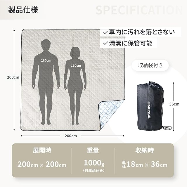 【サイズ】展開時:200×200cm(3~5人用)|収納時:直径18×36cm(1.0kg)