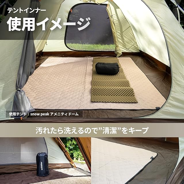 【お手入れ簡単】洗濯機でまるごと洗えますので汚れても安心です。清潔に保てるためテントのインナーとして使いやすいです。なお、洗濯の際には色移りを防ぐために他の洗濯物とは分けて洗濯ネットに入れてから洗うようにしてください。