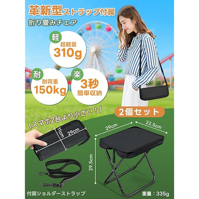 MuGaoDee 折りたたみ椅子 コンパクト 万博持込【2点セット・310g超軽量・ショルダー付き】アウトドアチェア キャンプ 持ち運び便利 耐荷重150kg 行列並び 収納バッグ一体型 組み立て簡単 キャンプチェア ミニサイズ アルミ合金フレーム 頑丈 防水 折り畳み椅子 キャンプ/ピクニック/順番待ち/運動会/釣り/花火大会/スケッチ (2点セット)