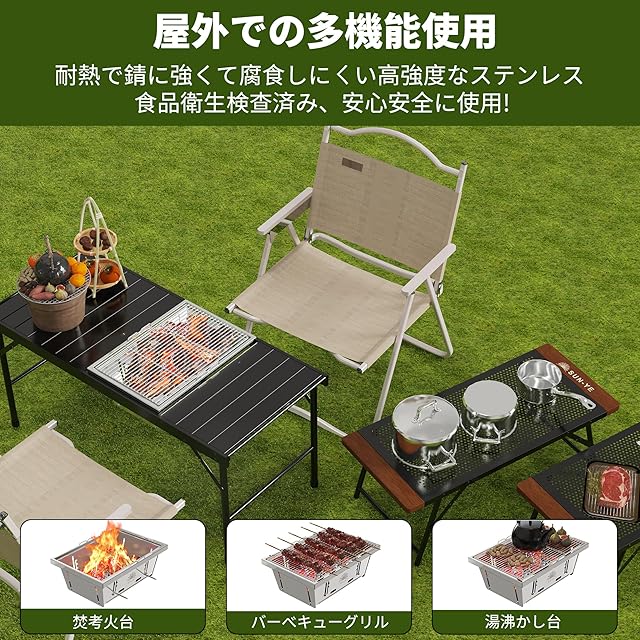 SUN-YE 折り畳みコンロ バーベキュー コンロ BBQグリル 焚き火台 igtテーブル用 調整可能な炉内燃焼カーボンプレートの高さ ステンレス製 瞬時に展開・収納 ステンレス鋼 1枚 ステンレス棒 2本 IH調理器対応 収納袋付き