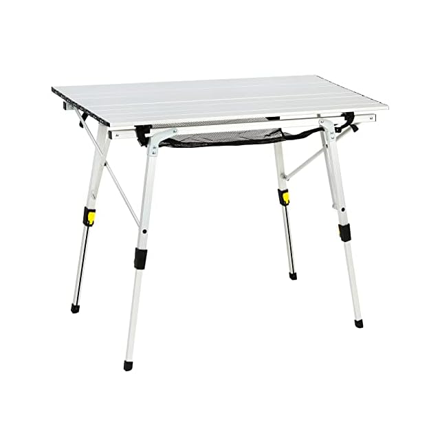 Timber Ridge アウトドアテーブル 折りたたみ 高さ調節 耐荷重30kg アルミ ロールテーブル 収納袋付き コンパクト キャンプ用 90L*53W*45-70Hcm 重量4.2kg