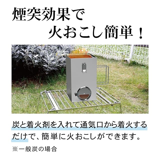【煙突効果で火おこし簡単】炭と着火剤を入れて、通気口から着火するだけで簡単に火おこしができます。