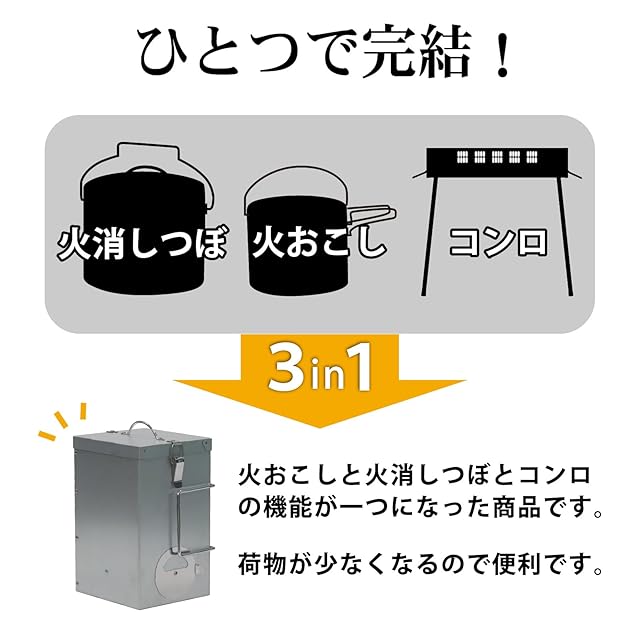 color:スチール style:3Way(火おこし・火消し・コンロ):