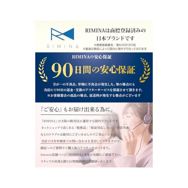 ◆安心の日本販売店 / RIMINA(商標)ブランドの製品は、大阪府枚方市で運営を行っているネットショップの株式会社RIMINAが責任を持って販売いたしております。 海外の販売店と違い、日本人担当者指示による検品体制を取っており、90日の延長も行なっております。万が一の不良等があった場合にも、 しっかりとやアフターサポートをさせて頂きますので、安心してご購入下さい。