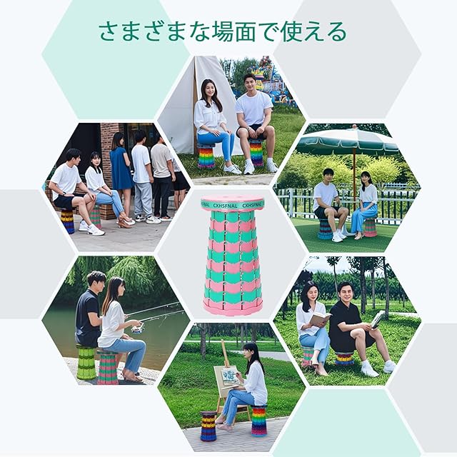 【様々な場所で大活躍】 キャンプなどアウトドアの事、釣り、野外フェス、BBQ、ピクニック、行列並び、花火会場、登山、写真撮影・ガーデニング。さまざまな場面でお使いいただけます。置き台として、スポーツ観戦、テーマパークでのパレード待ちなど、様々なシーンで便利に使う事が可能です。