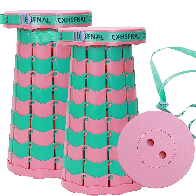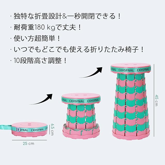 折りたたみ椅子 アウトドアチェア 2個セット 伸縮式 キャンプ椅子 折り畳み式 キャンプスツール 軽量 持ち運び 伸縮スツール (ピンク、グリーン, 二つ)