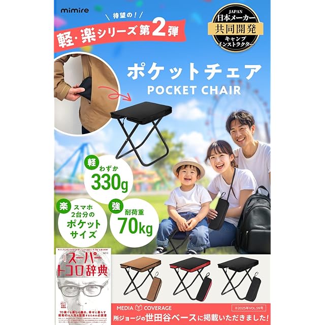 【所ジョージの世田谷ベース掲載】 折りたたみ椅子 軽量コンパクトチェア 持ち運び [超軽300g×スマホ2台分のポケットサイズ] (1, ブラウン 1つ入り)