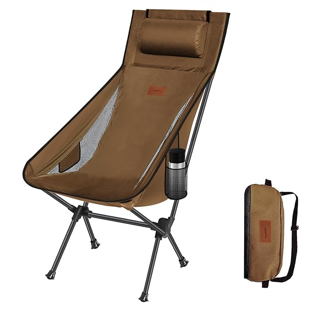 DesertFox アウトドアチェア 折りたたみ 枕付き 超軽量 【独自開発のカップホルダー】 【耐荷重150kg】 キャンプ椅子 コンパクト イス ハイバック 椅子 収納袋付属 お釣り 登山 携帯便利 0088 (ブラウン,Large)
