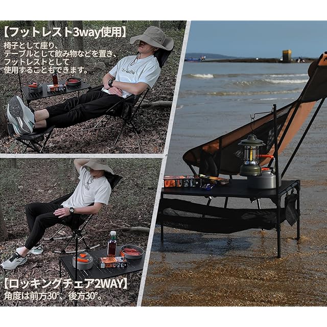 【優れる耐久性と通気性】 アウトドア椅子は800Dポリエステルを採用した座面とメッシュの設計で、あつい季節も蒸し暑くなく、抜群の通気性と快適な座り心地を確保できます。座面の裏も防水加工し、雨でもタオルでちょっと拭くだけ座れます。さらに、座面を深くするし、ハンモックのように体にフィットし、ゆったりと包み込まれる座り心地を実現したレジャーチェアです。