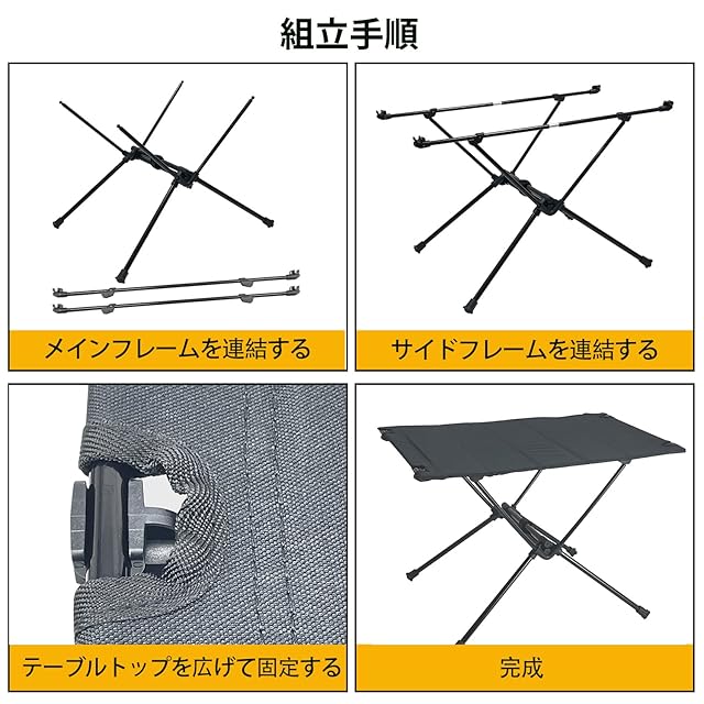 【組立簡単】弾性ロープが内蔵された一体式フレームで組み立てしやすい。内蔵ロープに従ってフレームを簡単に連結することができます。複雑な取り付け不要、わずか数秒間で組立可能。持ち運びに便利なハンドル付きナイロン製のキャリーケースが付属され、もっと便利に使えます。キャンプ、バーベキュー、旅行、ピクニック、釣りなどのイベントに対応可能。お茶のテーブル、ゲームテーブル、物置台としても大活躍!