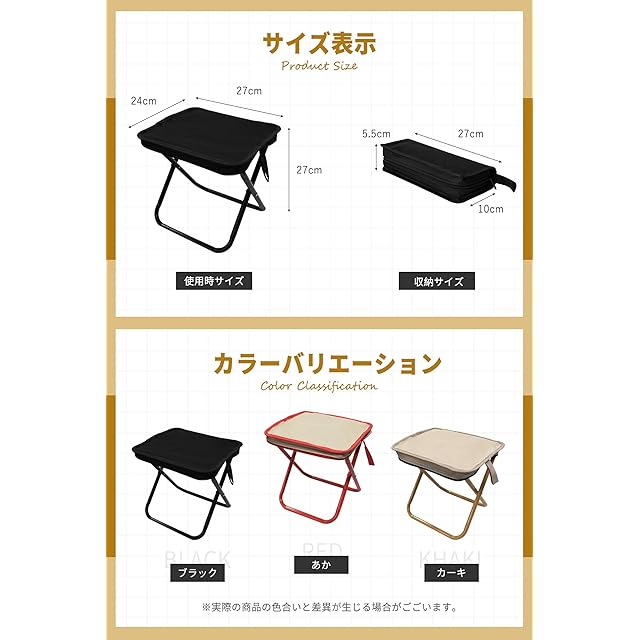 【アウトドアに最適なキャンプ用品】 使用サイズは23×26×26cmと、見た目以上にしっかり座れる設計。キャンプ・釣り・花火大会・公園・スポーツ観戦など幅広いシーンで活躍するキャンプ用品です。災害時の備えにもおすすめ。