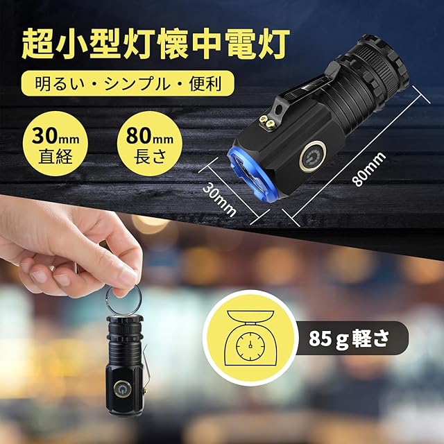 【 高耐久性&持ち運びが簡単 】この懐中電灯は、超高硬度のアルミ合金を採用しているため、頑丈で耐衝撃性に優れています。 防災や護身用としても使用可能です。耐摩耗性、耐衝撃性を備えた強固なアルミ製のアタックヘッドは、アウトドア、キャンプ、ウォーキング、緊急時の光源として、また身を守るツールとしても活躍します。手のひらに収まるほどの超小型サイズとわずか85gの超軽量設計なので、ポケットやバッグに気軽に収納できます。 キャンプや夜の散歩など、どんなシーンでも持ち運びに便利です。