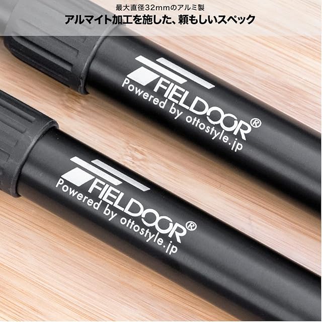 FIELDOOR(フィールドア) 伸縮式 アルミテントポール 直径32mm (高さ79~250cm) 4継無段階調節 2本セット 【ブラック】 収納袋付き 振り出しタイプ 簡単 高さ調節 回すだけ ロック スライド