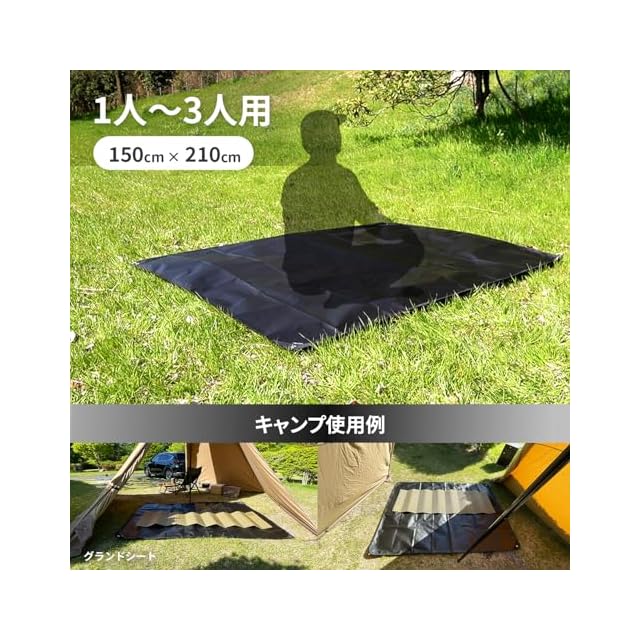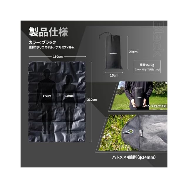 JIMENCE(ジーメンス) レジャーシート グランドシート アルミ防水 150×210cm 収納袋付き 1~3人用 (ブラック)