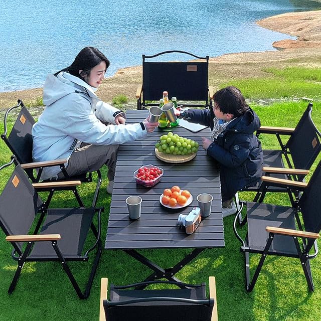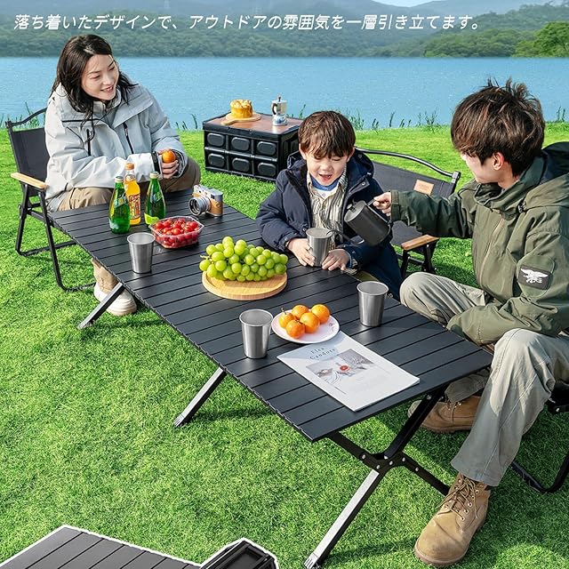 TAO ONE アウトドアテーブル 120x60x44cm キャンプテーブル アルミ ロールテーブル 折りたたみテーブル 持ち運び テーブル 軽量 コンパクト 屋外 食卓 BBQ イベント用 ブラック