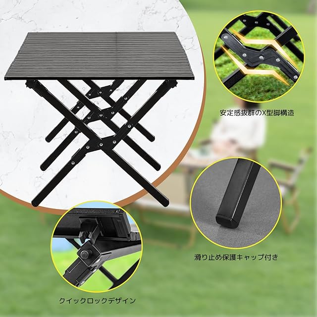 【優れた素材】高品質なアルミニウム合金製で、軽くて耐久性があります。天板表面はブラック塗装が施されており、シンプルでスタイリッシュな印象です。耐熱性と防水性にも優れ、汚れや傷がつきにくい仕様です。